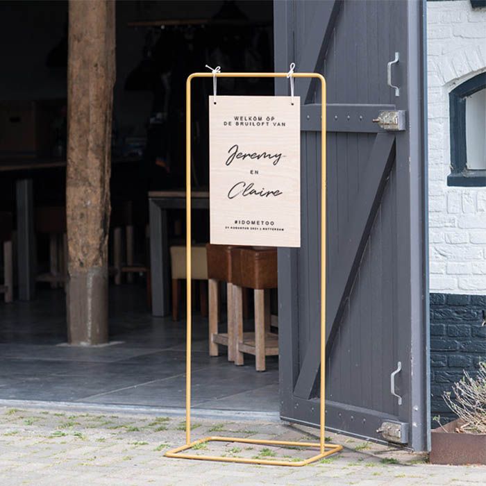Zorg voor een spectaculaire entree met dit metalen frame voor welkomstborden. Decoreer het gouden frame met een (gepersonaliseerd) welkomstbord.
