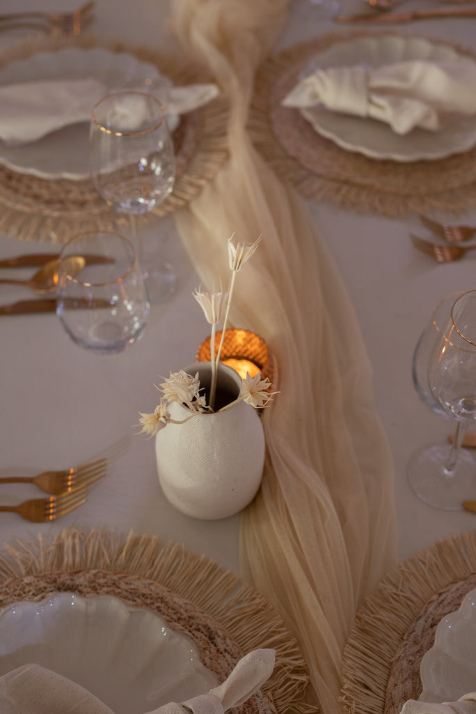 Deze hippe vaas heeft een stoere ruwe afwerking. Steek er (kunst)bloemen, takken of pluimen in en je hebt een echte blikvanger op je event.